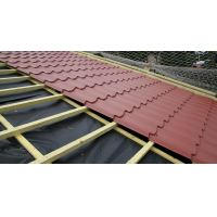 La tuile 24-183-1100 est une plaque emboutie au motif des tuiles, destinée aux couvertures sèches et surcouvertures de pente courante 25% à 50%. Elle est une alternative aux tuiles classiques pour les nouvelles constructions, mais peut aussi servir pour la rénovation de vieilles toitures.